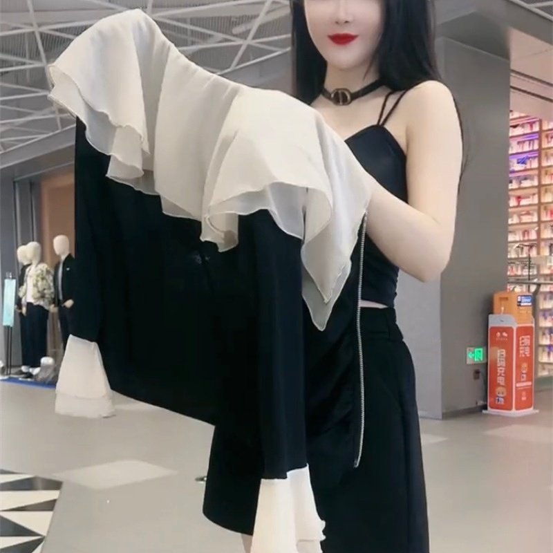 网红爆款时尚小衫女2025春季款洋气设计感荷叶领撞色显瘦拉链外套