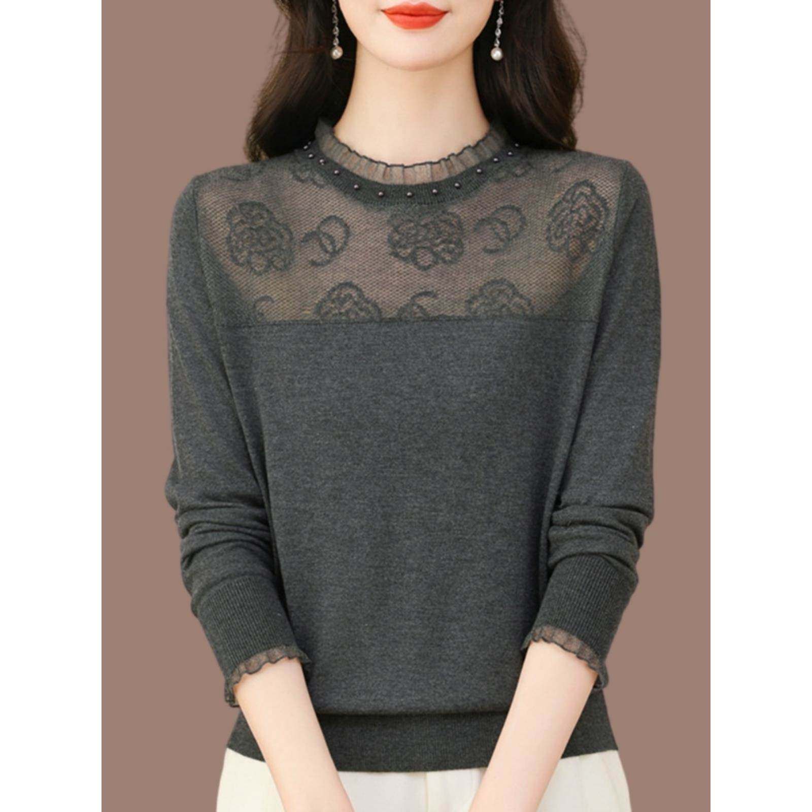 - 蕾丝雪纺打底衫女长袖