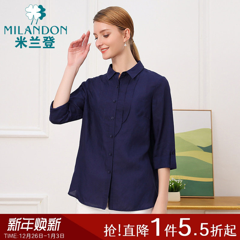 米兰登中老年妈妈装七分袖衬衣休闲春秋季新款时尚小衫设计感小众
