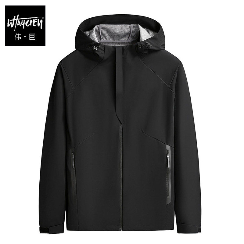 连帽冲锋衣外套男春季2026高级感防风工装夹克宽松胖子加肥加大码