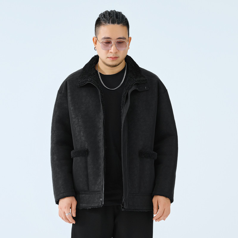 半墨大码男装双面摇粒绒外套男士2025新款宽松秋冬季胖子夹克外套