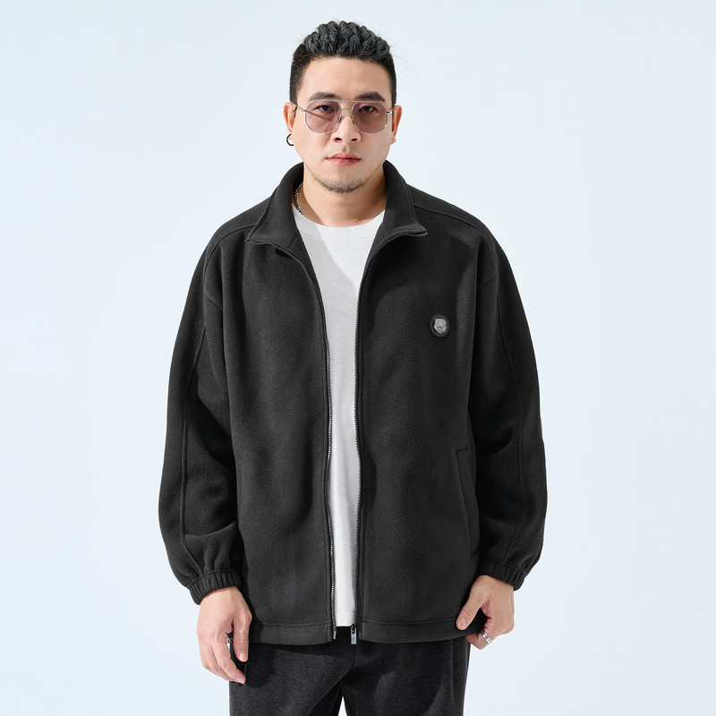半墨大码男装摇粒绒夹克男2025新款宽松百搭秋季胖子男士夹克外套