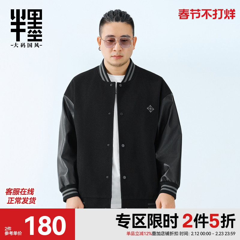 半墨大码男装棒球服外套男2025冬季新款拼接宽松加肥加大胖子夹克