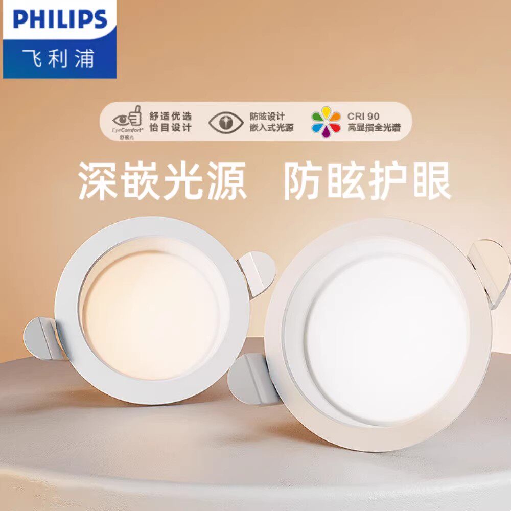 飞利浦led筒灯嵌入式家用防眩4寸洞灯孔灯天花板吊顶客厅超薄铜灯