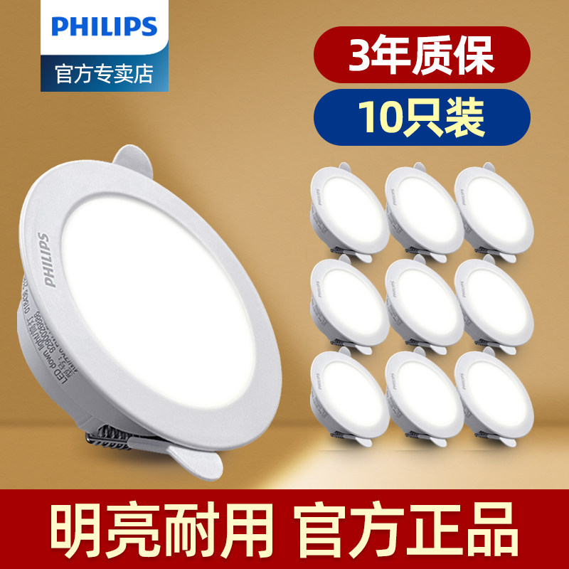 飞利浦LED筒灯家用超薄天花灯射灯开孔75mm客厅10公分嵌入式孔灯