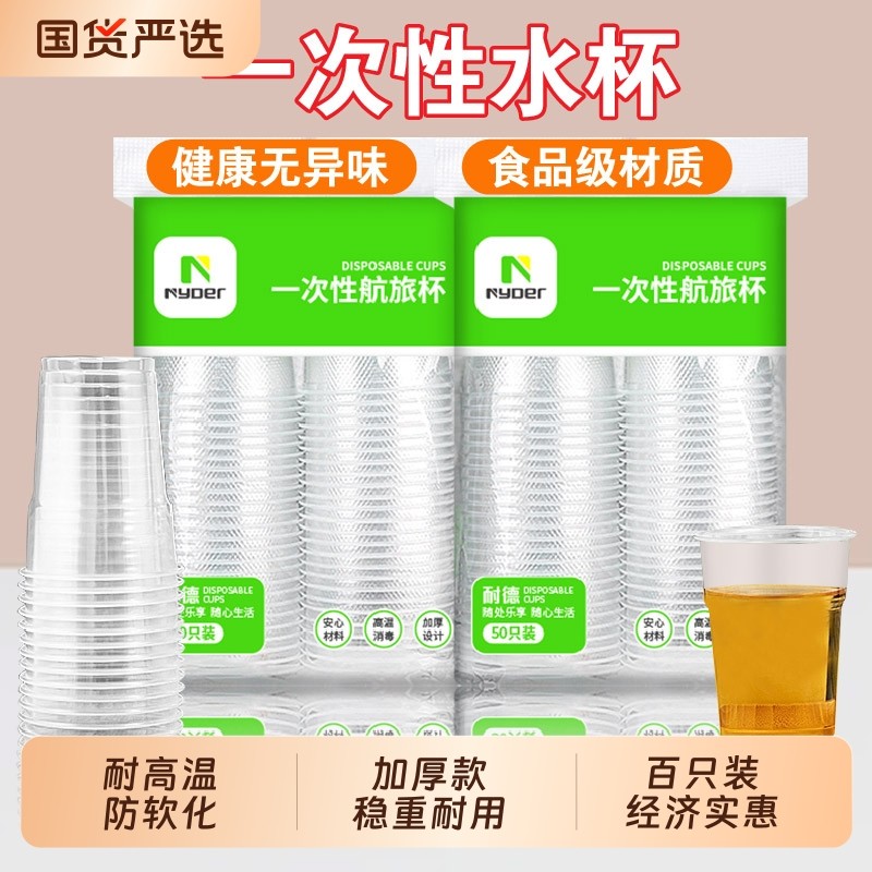 一次性杯子塑料杯家用加厚耐高温大号水杯商用透明杯小航空杯茶杯