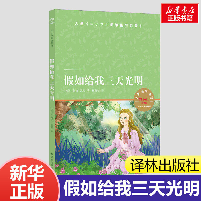 假如给我三天光明 海伦凯勒国外名著译林出版社天猫文库经典儿童文学小学生三年级四年级五年级课外书推荐阅读8-9-10岁知识拓展