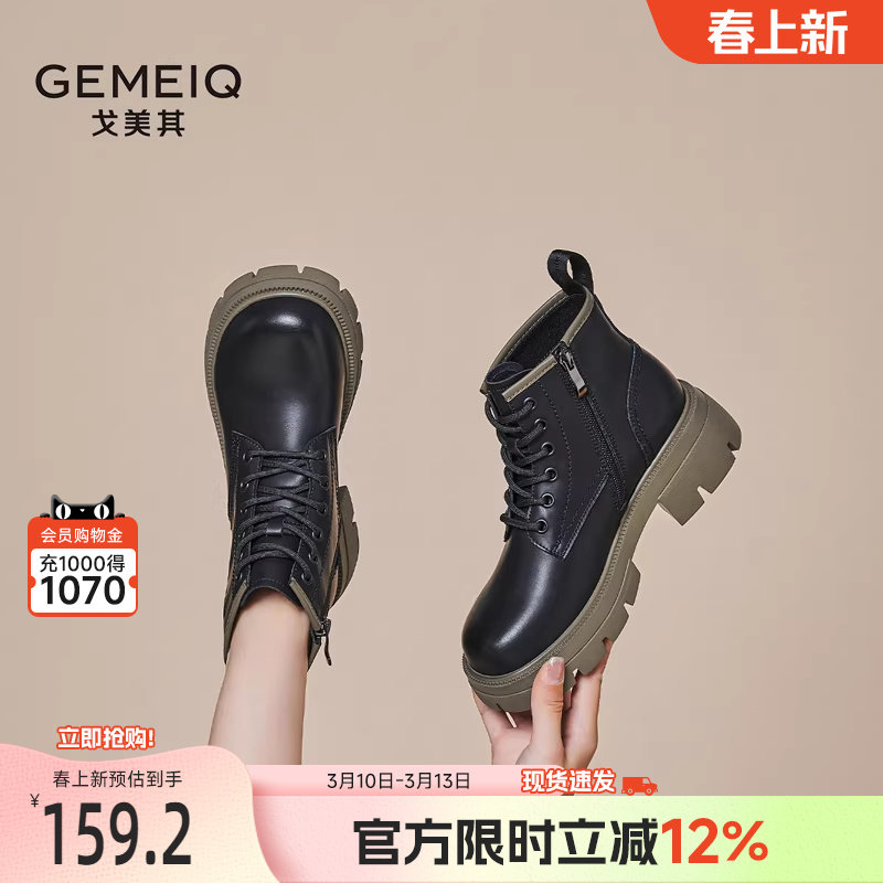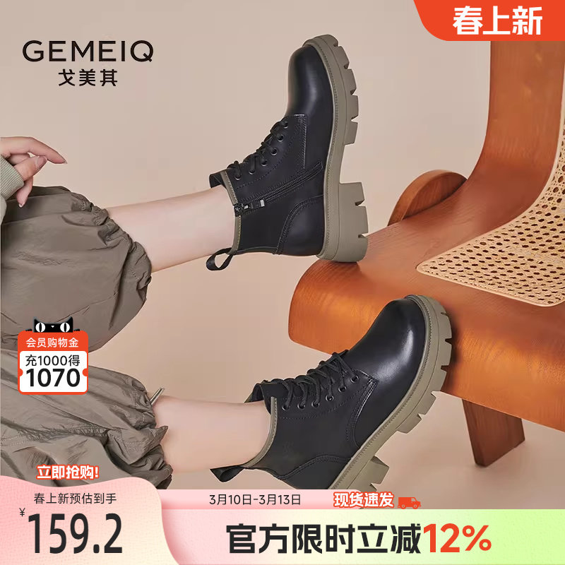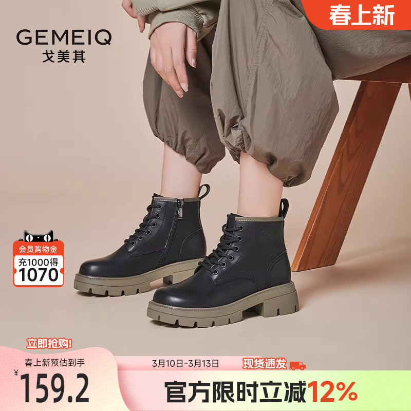 戈美其真皮马丁靴女舒适春季新款复古学院风短靴百搭靴子圆头女鞋