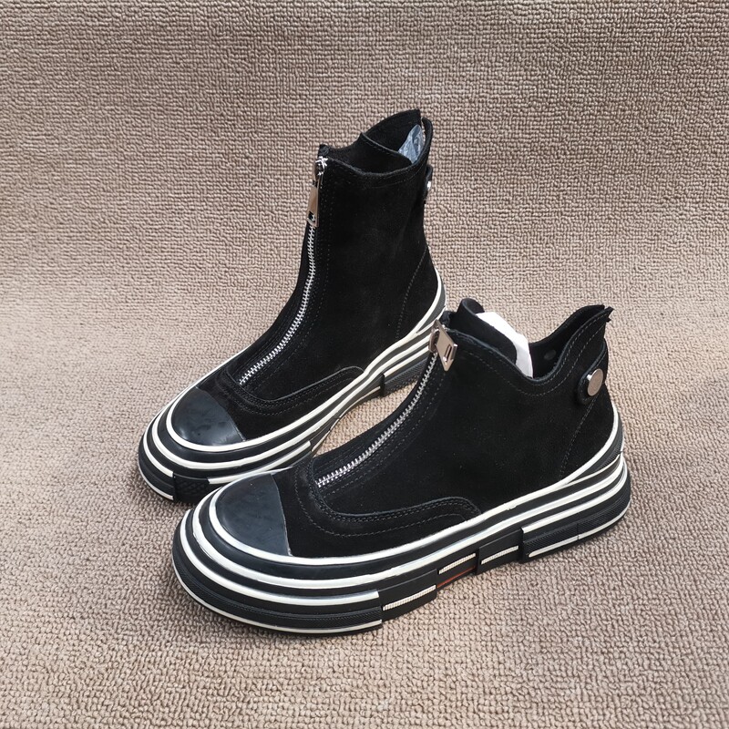 工厂尾单处理真皮女鞋2019秋新款牛反绒马丁靴前拉链学院风女短靴