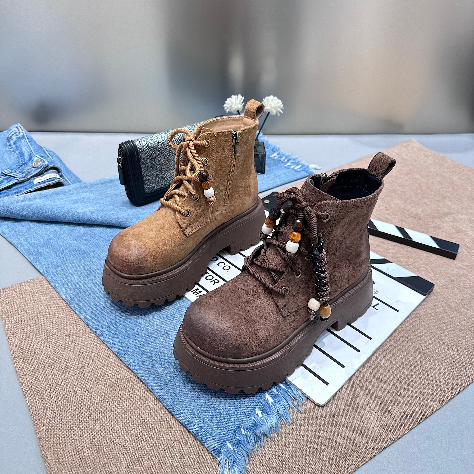 2025秋季新款时尚休闲鞋女鞋百搭马丁靴绒面舒适学院风加绒短靴潮