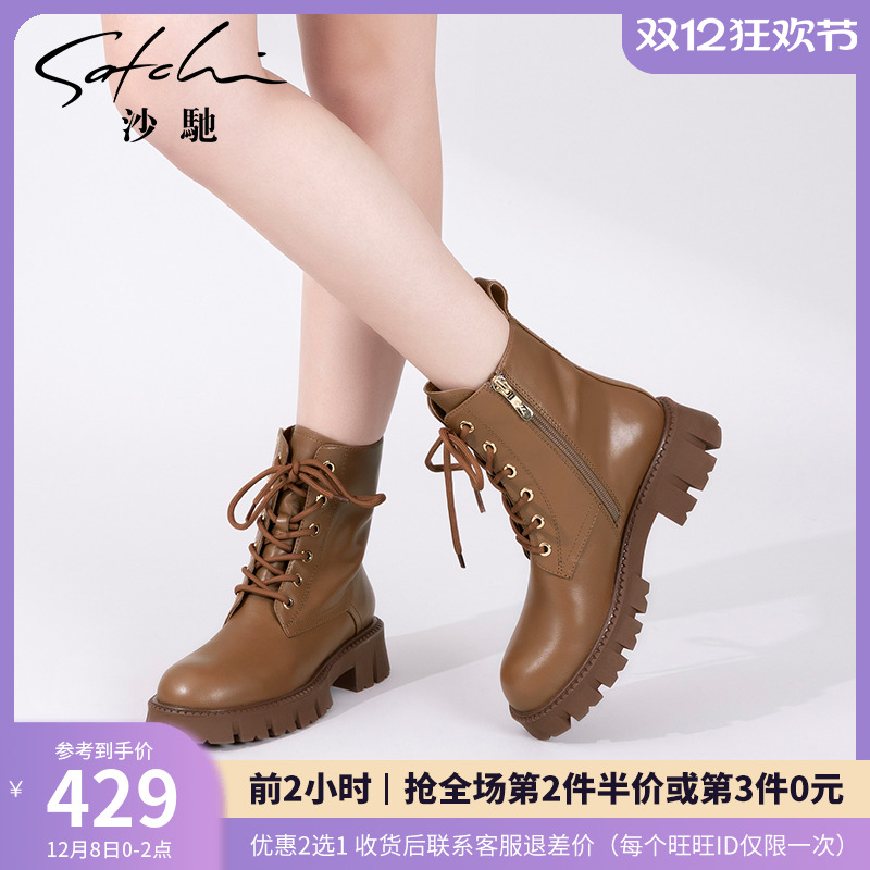 星期六学院风潮酷马丁靴短靴冬季新品厚底系带女靴SS34116560
