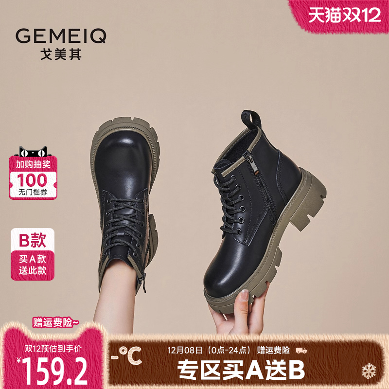 戈美其真皮厚底六孔马丁靴女2025冬季新款学院风短靴百搭靴子女鞋