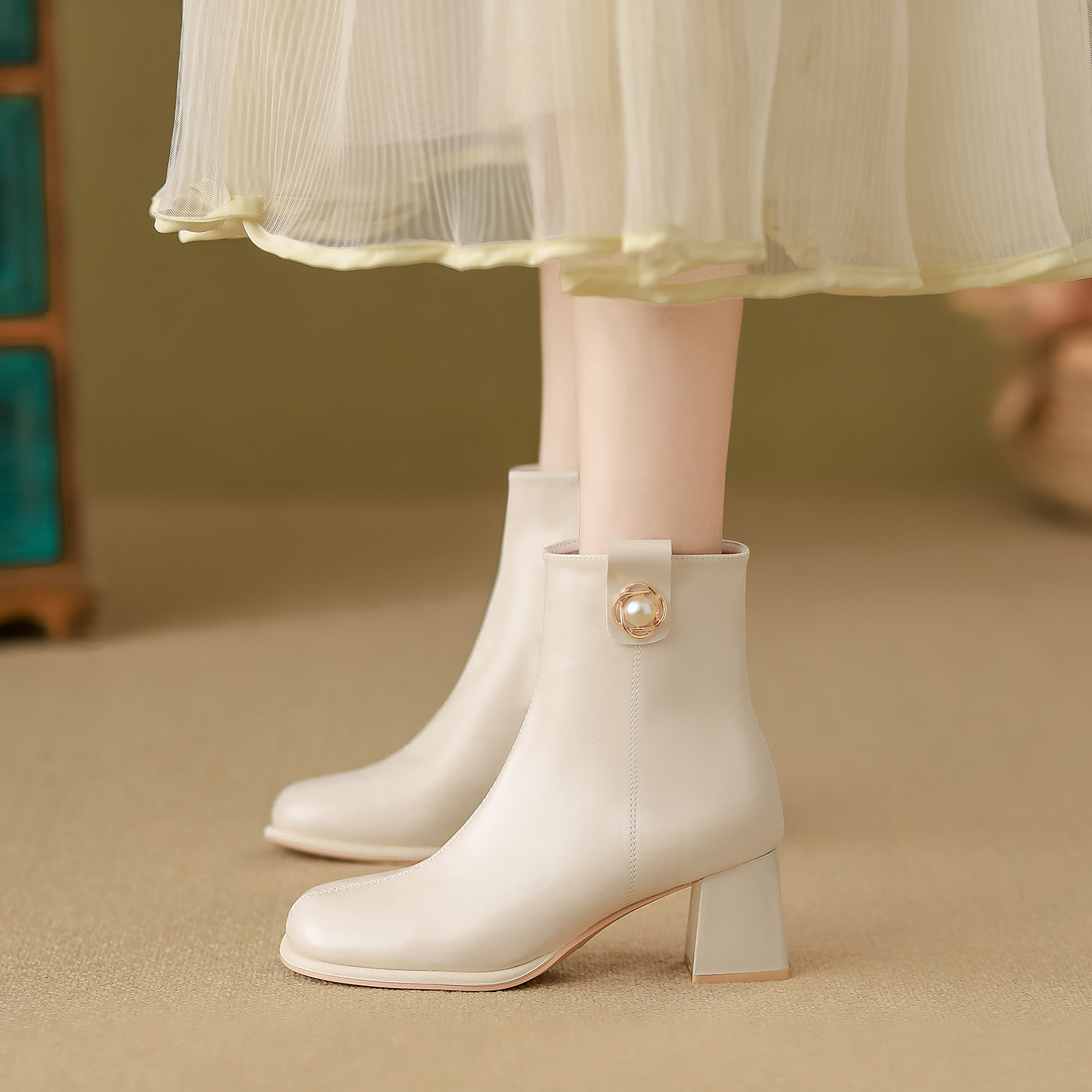 大东马丁靴23冬季新款学院风低跟粗跟短靴圆头侧拉链女鞋23D1611