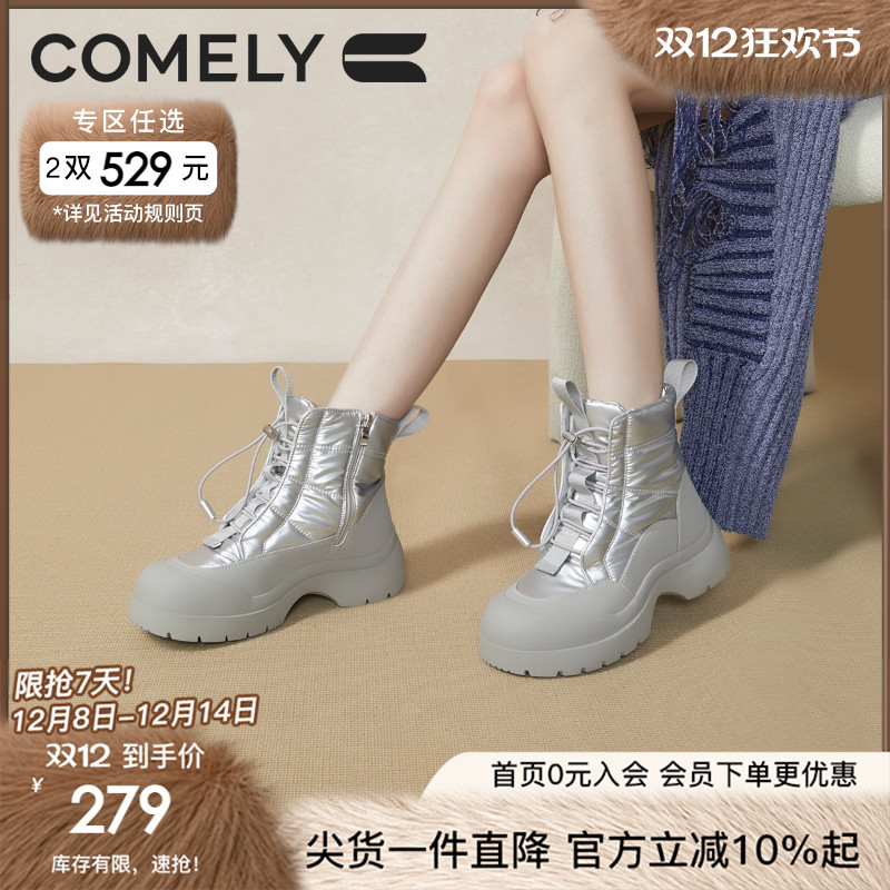康莉厚底雪地靴女2024年冬季新款英伦学院风女靴马丁炸街增高短靴