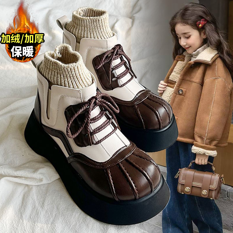 贝壳头马丁靴女童英伦风2025秋冬加绒厚底保暖学院风短靴带袜棉鞋