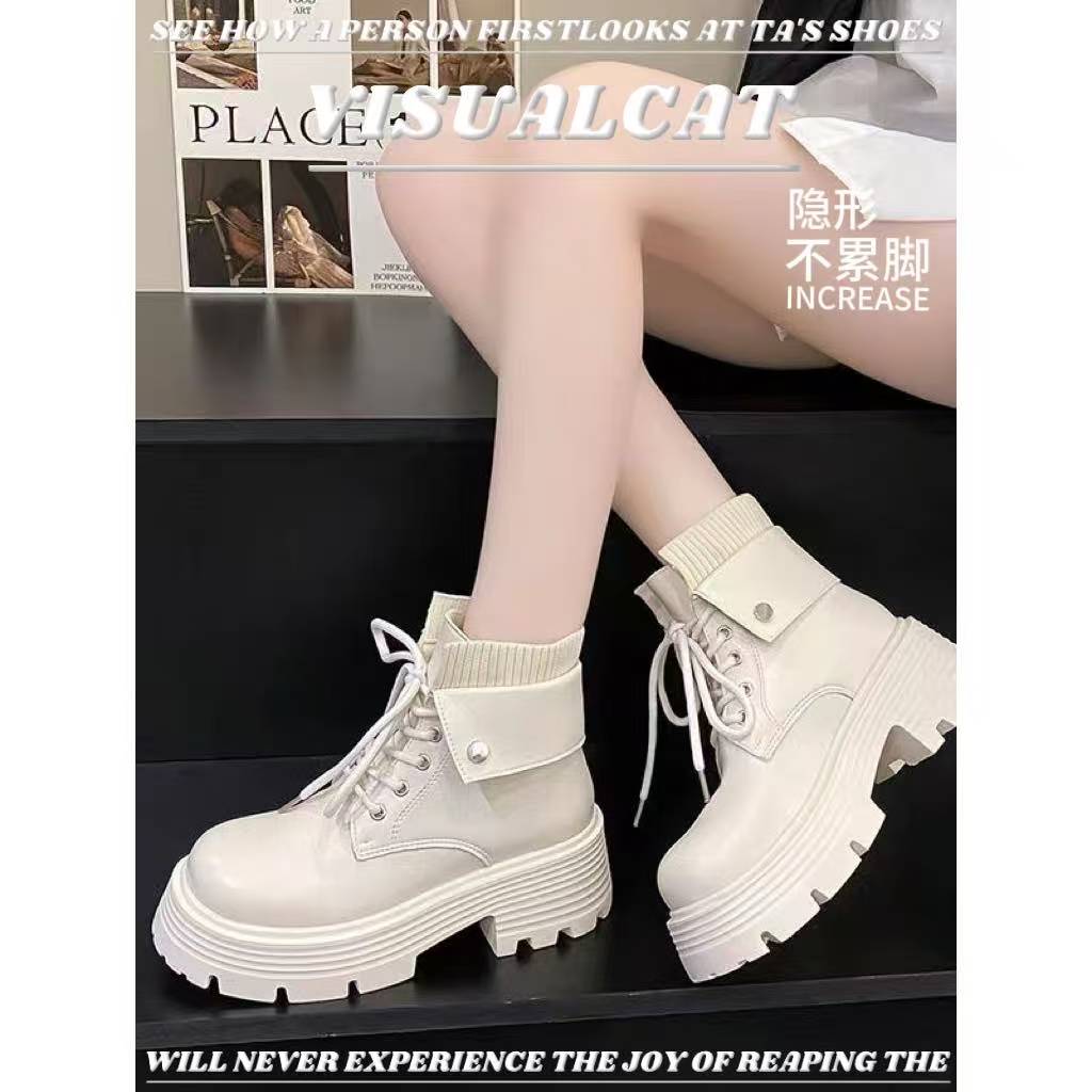厚底短靴女低帮2025年秋冬新款百搭配裙子马丁靴增高短筒靴学院风