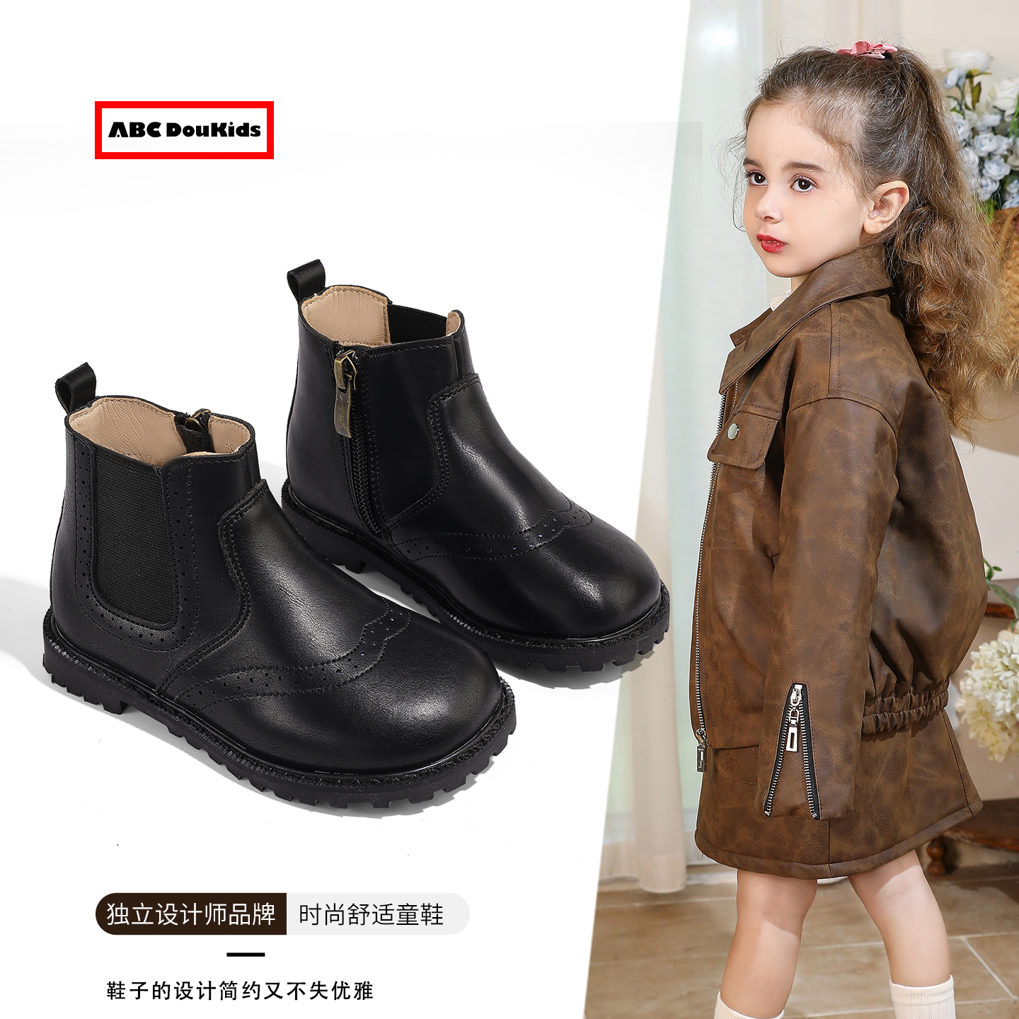 ABCdoukids女童短靴2025秋冬儿童洋气学院风马丁靴防滑小女孩皮靴