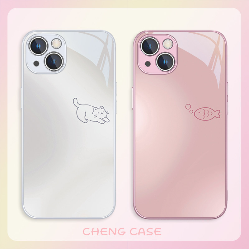 猫咪手机壳适用苹果17promax小鱼iPhone16pro小猫14plus/13渐变简约情侣15女新款11高级感8/12金属漆玻璃x套7