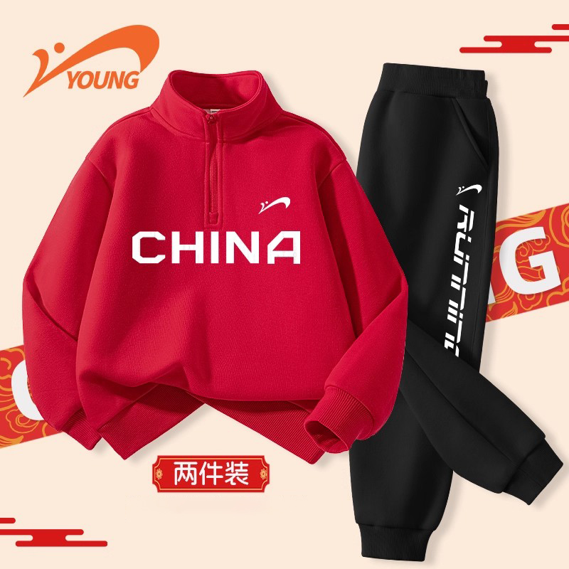 棉致女童冬装套装2025新款秋冬加绒一体绒女大童运动服儿童卫衣冬