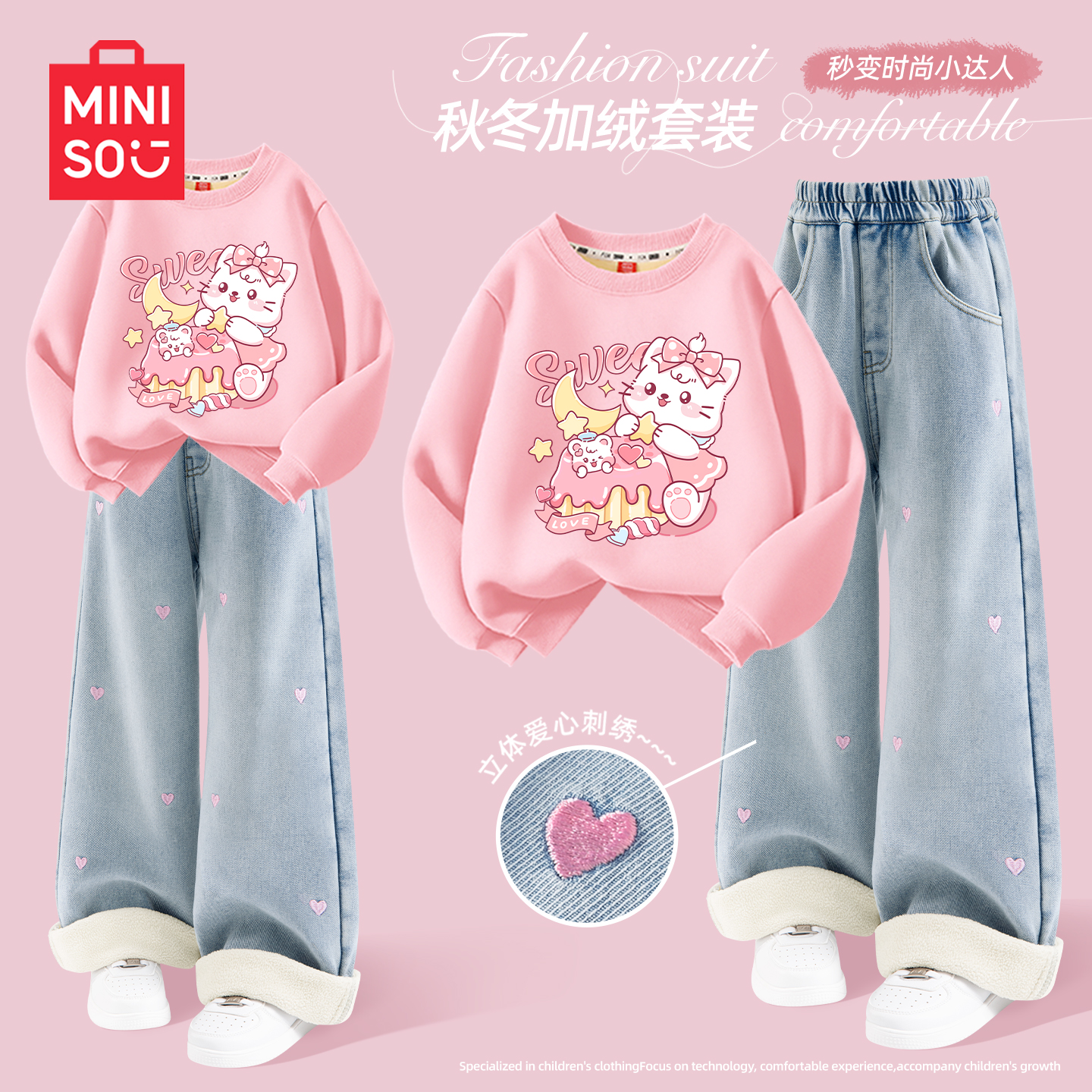 名创优品女童加绒套装2025新款儿童冬装衣服冬季卫衣女大童运动服