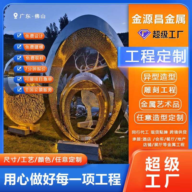 大型不锈钢雕塑金属摆件定制园林广场售楼处景观酒店雕塑小品水景