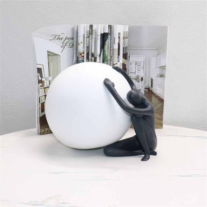 创意人物艺术抱球人摆件酒店雕塑人C像装饰品展台玄关柜软装摆设