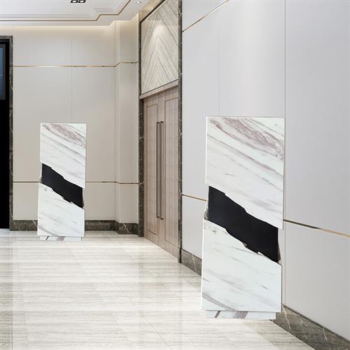 大理石岩板花架客厅玄关落地摆件酒店庭院轻奢高级感立柱雕塑底座