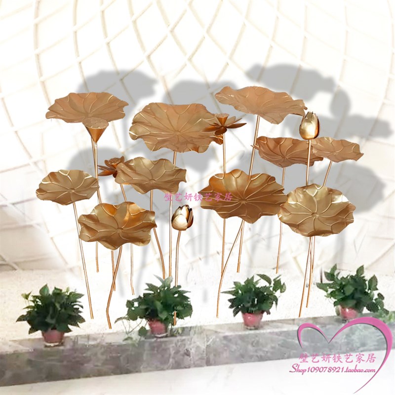 铁艺金色荷叶花园酒店雕塑水池水景装饰品不锈钢荷花婚庆落地摆件