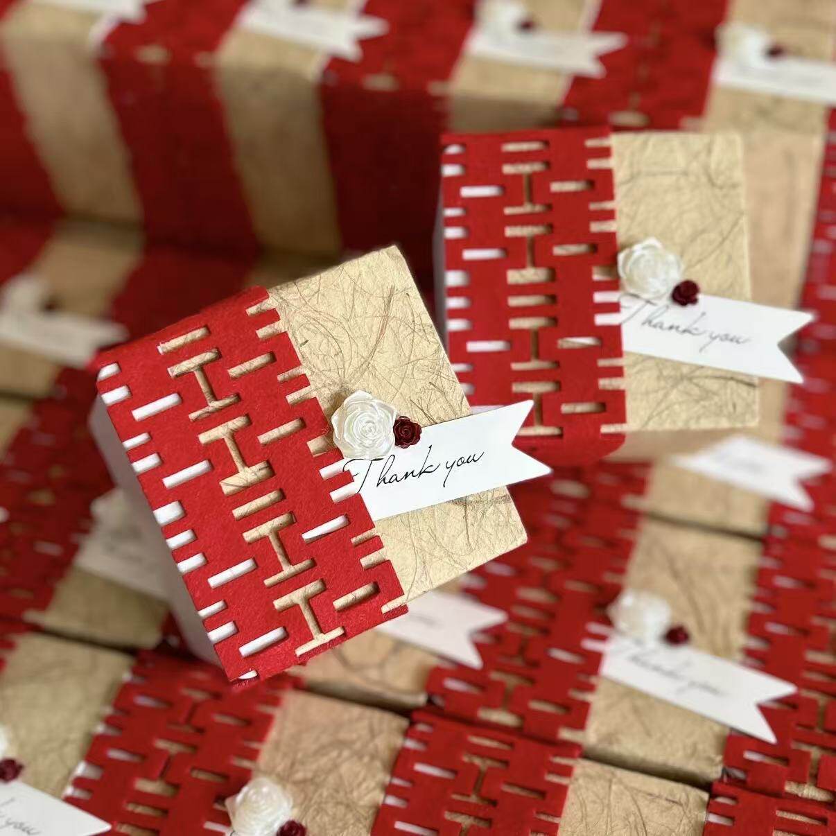 红色拉菲草填充物结婚礼物礼品盒新年礼物盒装饰包装伴手礼喜糖盒