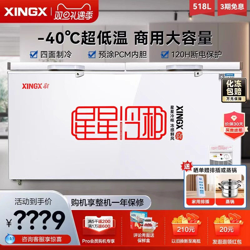 星星冰柜518升商用大容量冷冻柜718升冷藏冷冻保鲜柜茶叶急冻冷柜