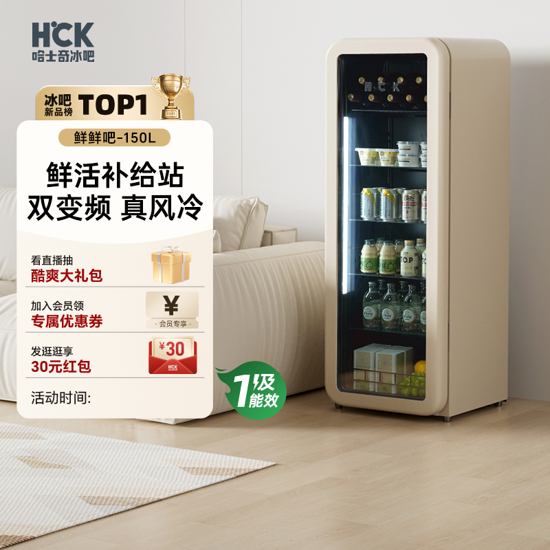 HCK哈士奇冰吧鲜鲜吧150L冷藏柜家用客厅茶叶饮料保鲜柜复古冰箱