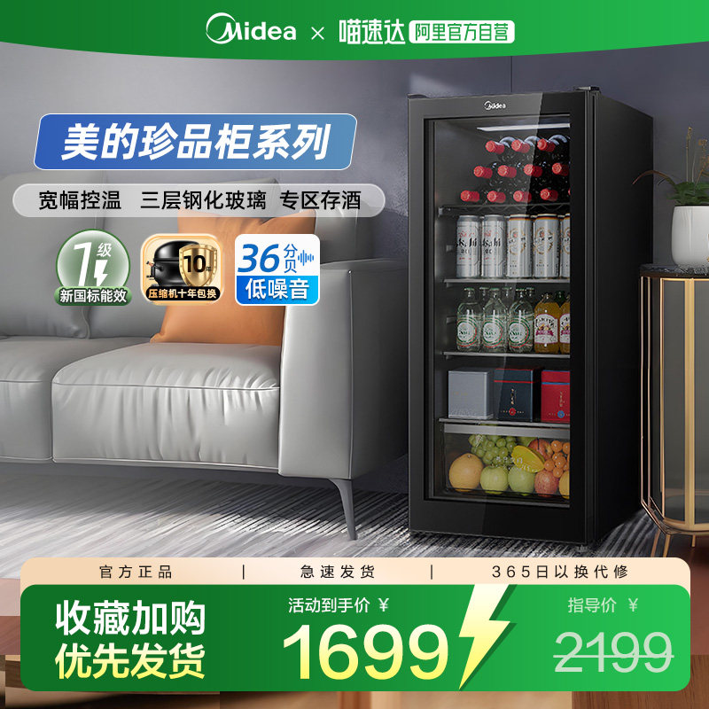 美的冰吧家用饮料冰箱客厅办公室茶叶保鲜柜透明冷藏红酒柜241