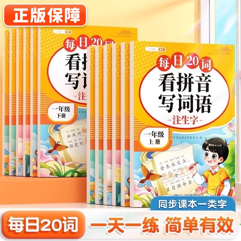 每日20词看拼音写词语一年级下册二年级上册三四五六年级小学语文同步专项训练练习册人教版字词生字注音拼音拼读一练阅读积累组词