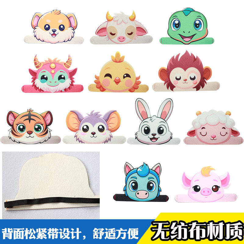 儿童十二生肖头饰兔子老虎猴子蛇龙鼠动物头饰幼儿园毕业晚会道具