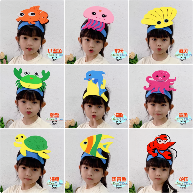 儿童演出海洋动物头饰舞台装扮表演小鱼海豚水母章鱼乌龟螃蟹头套