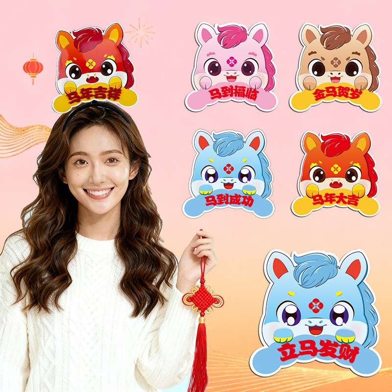 2026新年马年发箍元旦卡通动物头饰发卡可爱儿童表演道具学生发饰