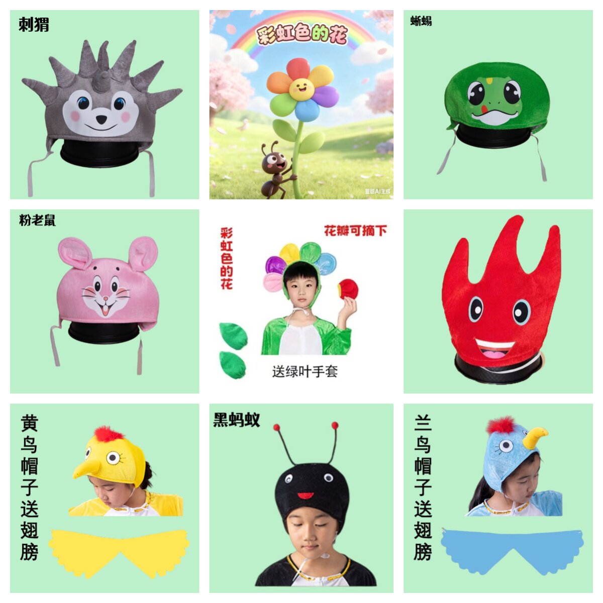 动物头饰彩虹色的花舞台剧道具表演儿童幼儿园角色扮演课本剧绘本