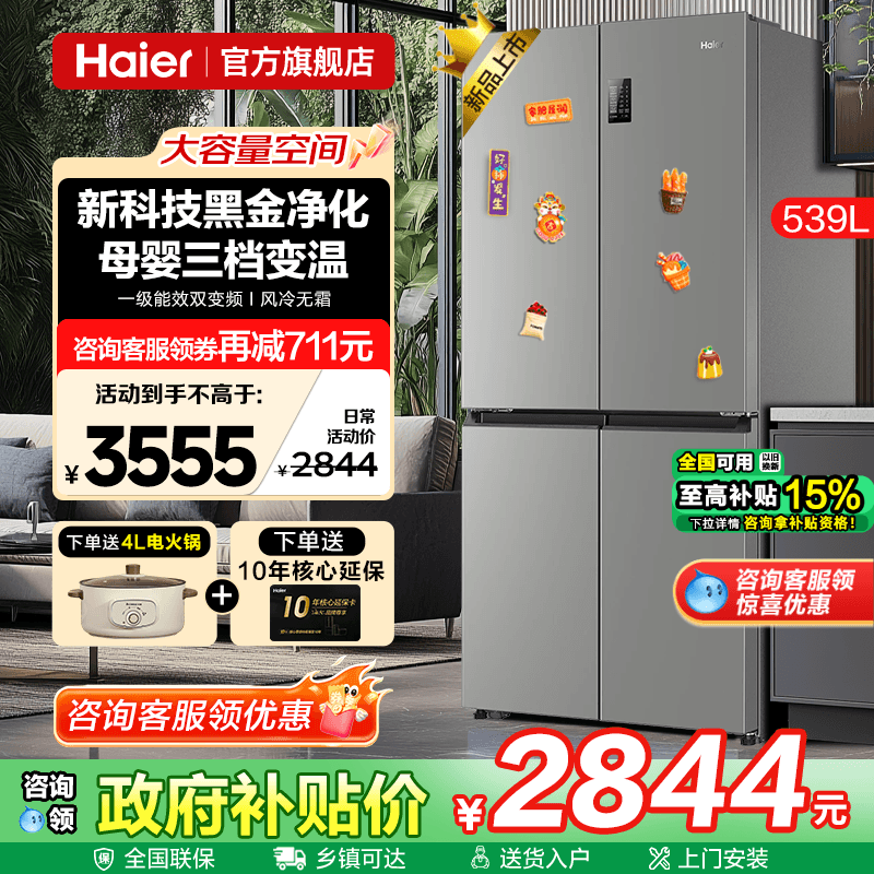 - 海尔三开门冰箱 家用