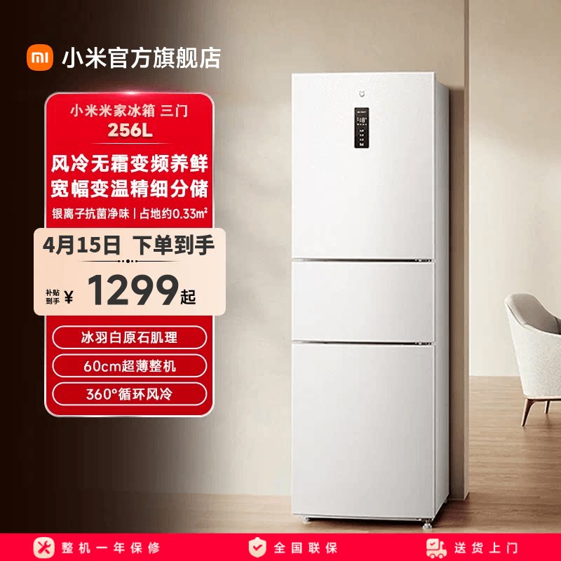 小米米家256L三开门风冷无霜家用租房宿舍寝室省电一级小冰箱