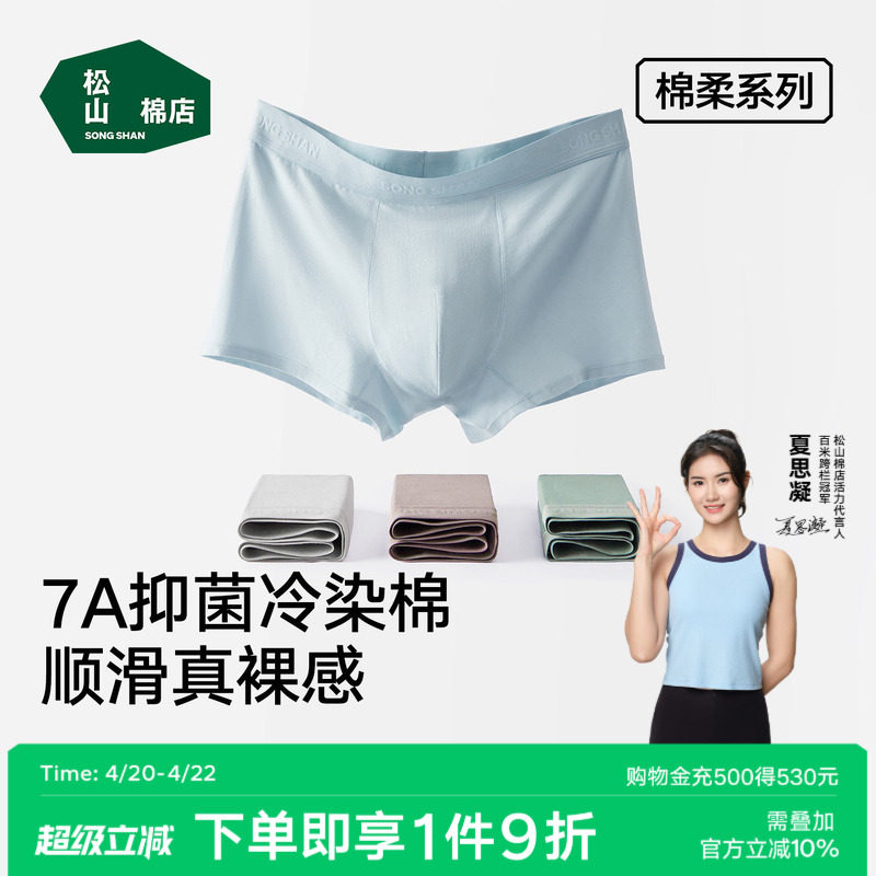 松山棉店蚕柔莫代尔男士内裤透气男生短裤青少年纯棉大码平角裤衩