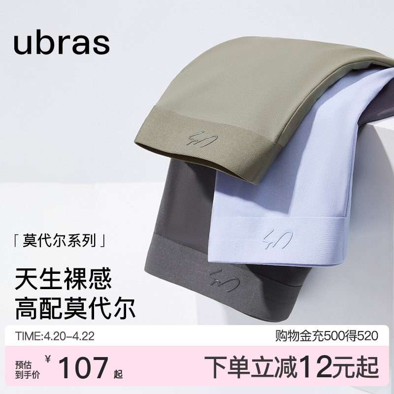 ubras莫代尔无痕男士内裤纯棉7A抗菌透气亲肤薄款四角平角短裤