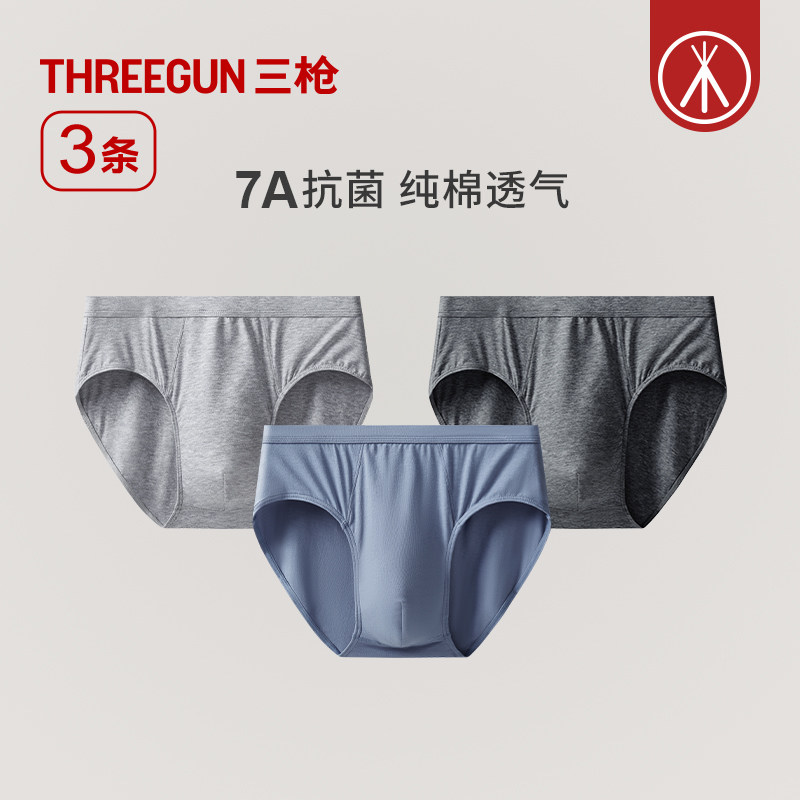 [3条]三枪内裤男纯棉三角男士内裤抗菌柔软透气中老年春夏不夹臀