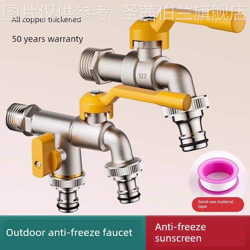 户外洗衣机水龙头全铜防冻裂庭院花园一进二出双出口锁双控制钥匙