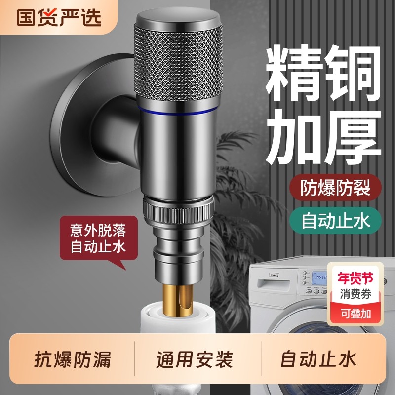 自动止水阀防止脱落水嘴转接头洗衣机水龙头全铜专用家用4分配件