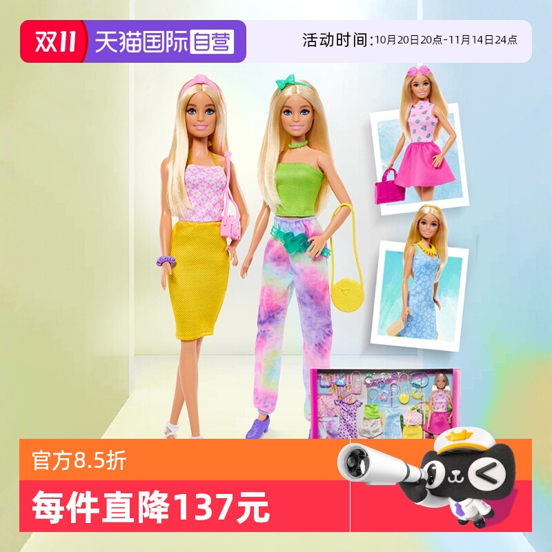 【自营】芭比娃娃套装玩具女孩礼盒衣服换装版旅行芭比马里布礼物