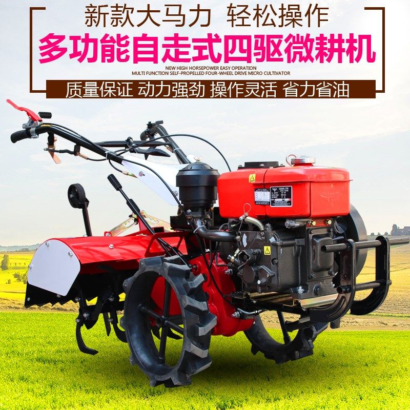 新式微耕机柴油四驱翻地松土耕地机农家用小型汽油开沟除草旋耕机