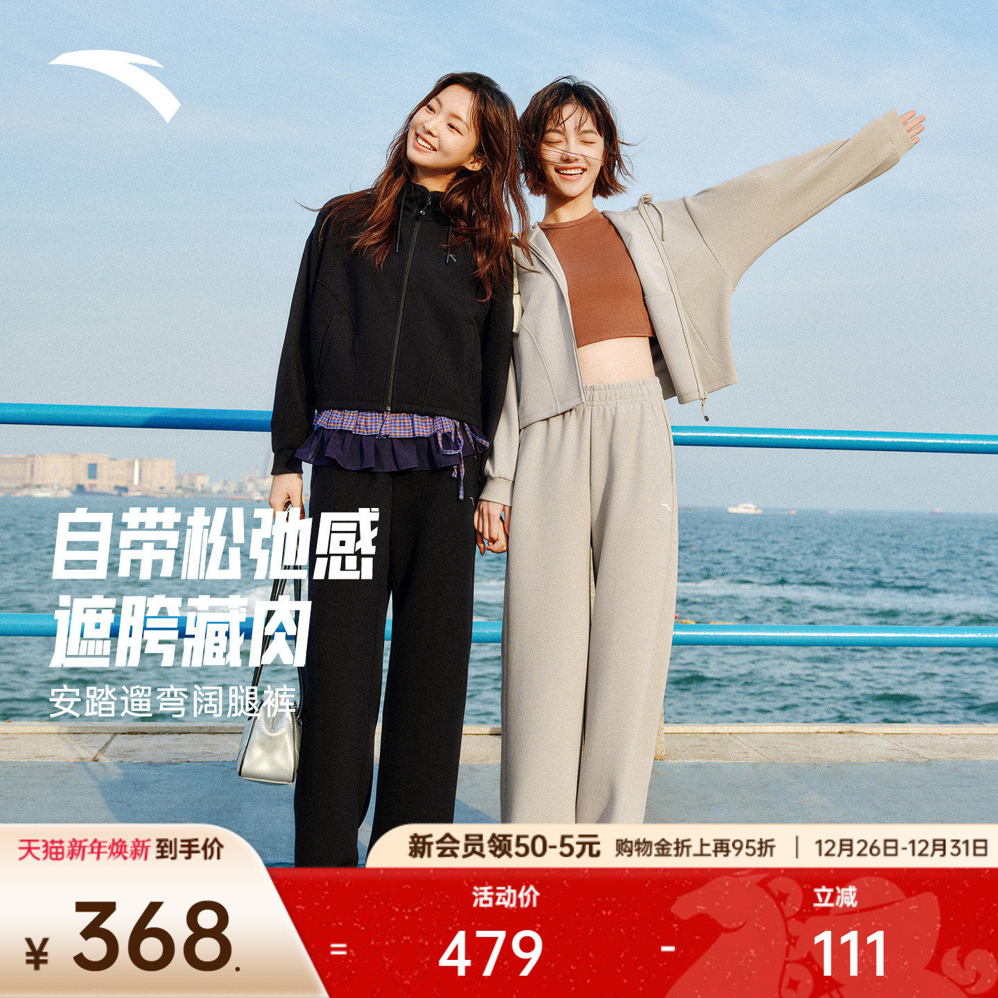 安踏遛弯套装丨慵懒风休闲开衫运动服女冬季新款百搭外套直筒长裤