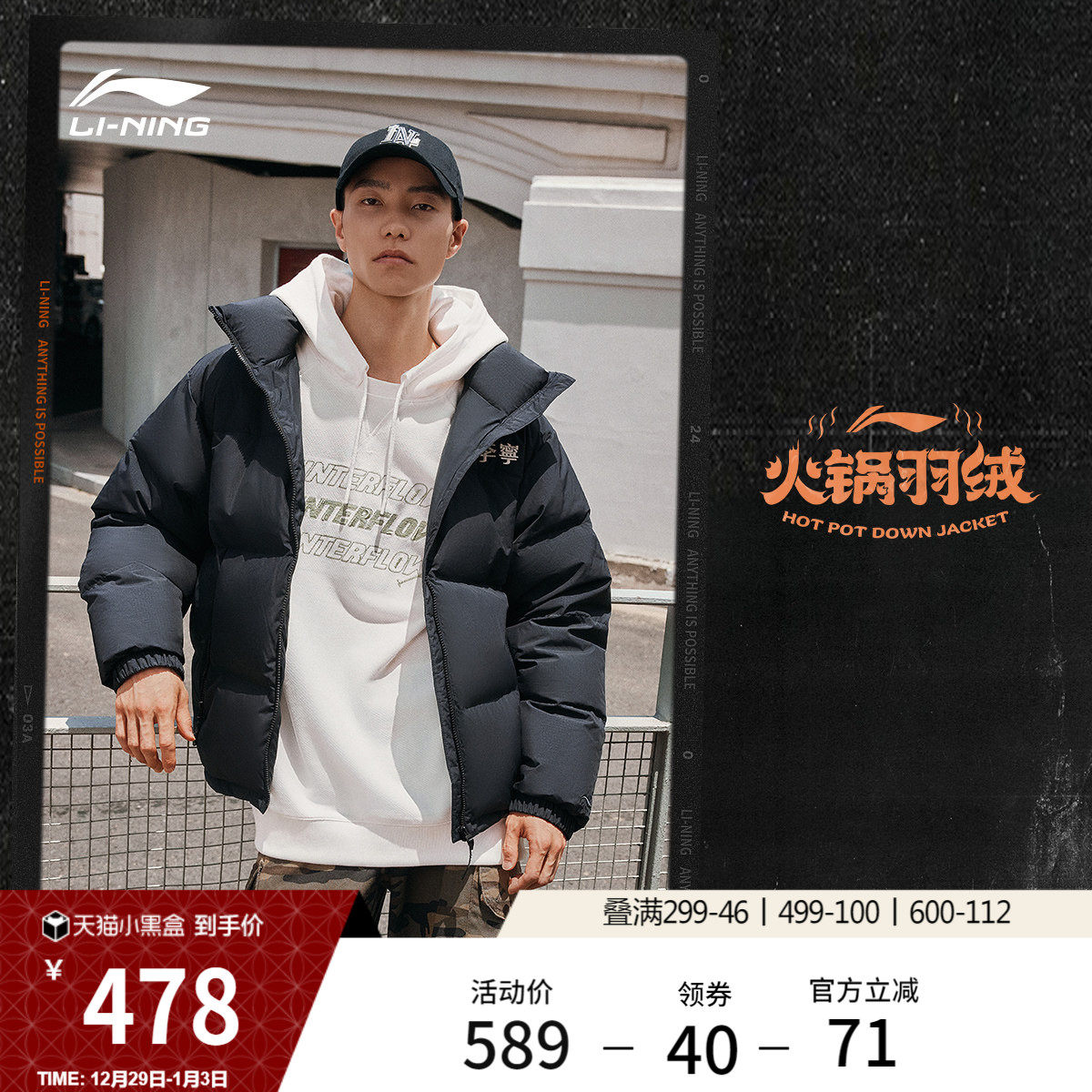 李宁火锅羽绒服丨官方短款男士冬季外套情侣加厚保暖防风运动服女