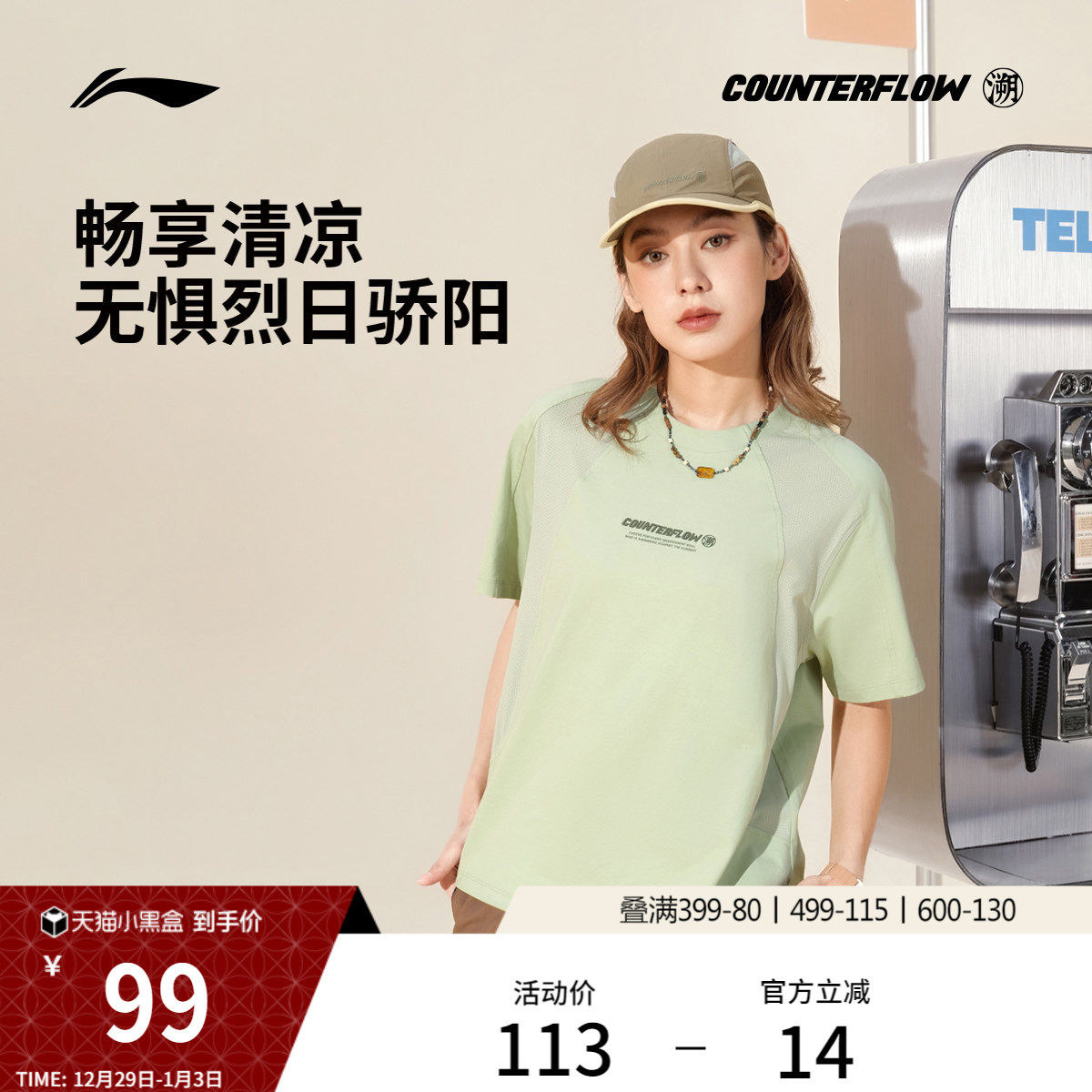 李宁户外CF溯丨短袖T恤女士圆领上衣夏季凉感透气针织运动服女