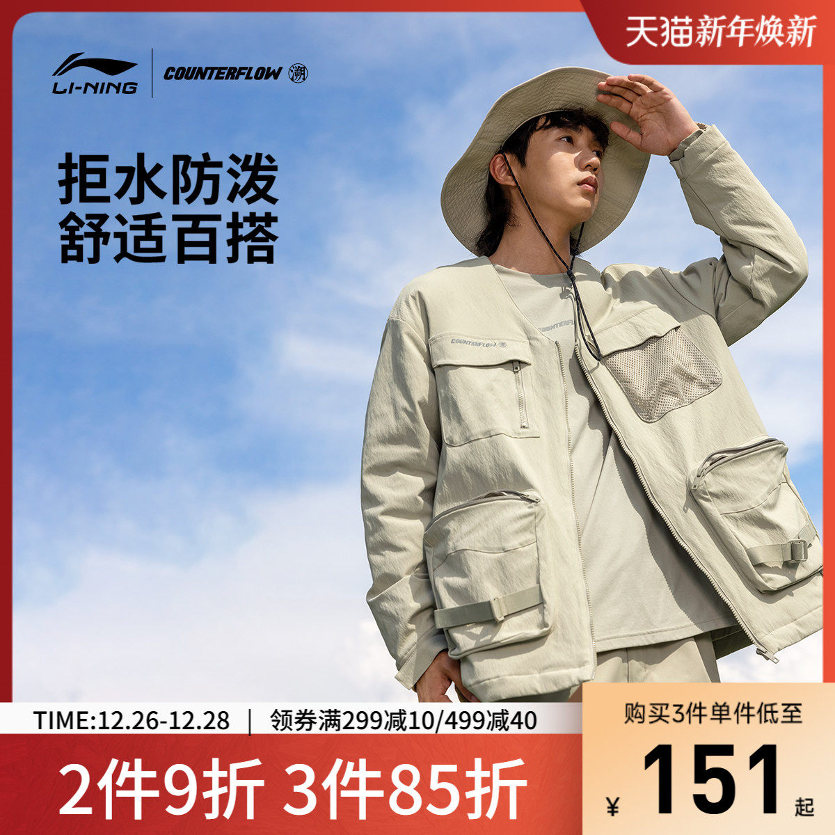 李宁CF溯棉夹克官方男士户外露营厚外套情侣V领秋冬保暖运动服女